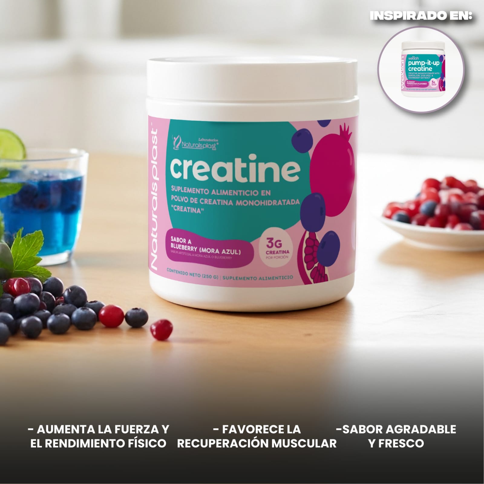 🌸 Que tu energía sea mas explosiva con creatina bluberry de 250 gr 🌸
